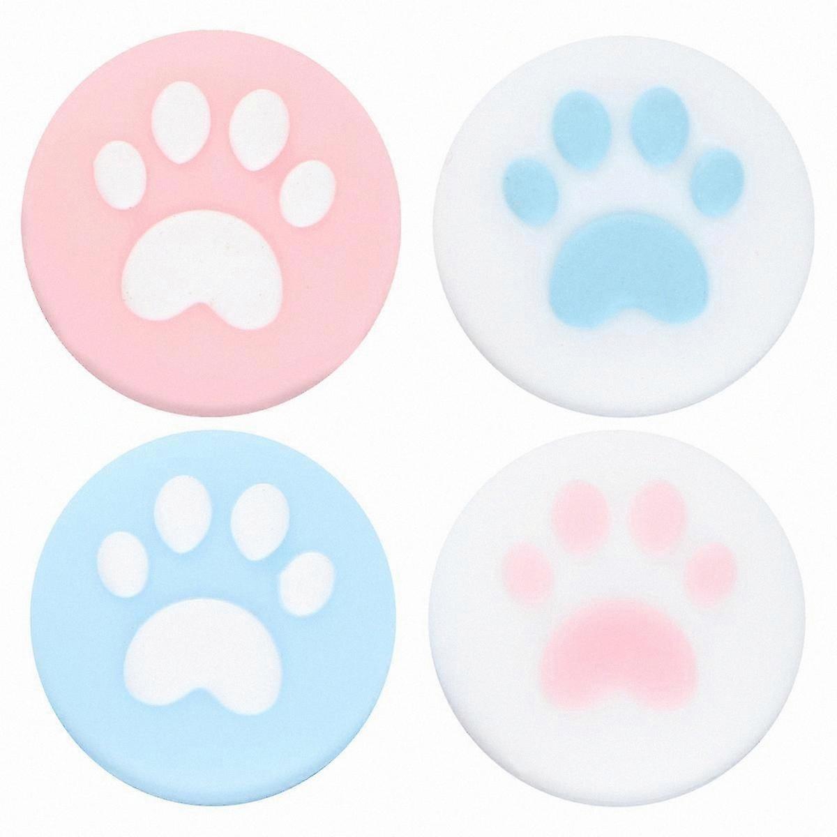 Cat Paw Design Joystick Caps - 4 Pack Silicone Grips for Comfort and Protection, Blue & Pink