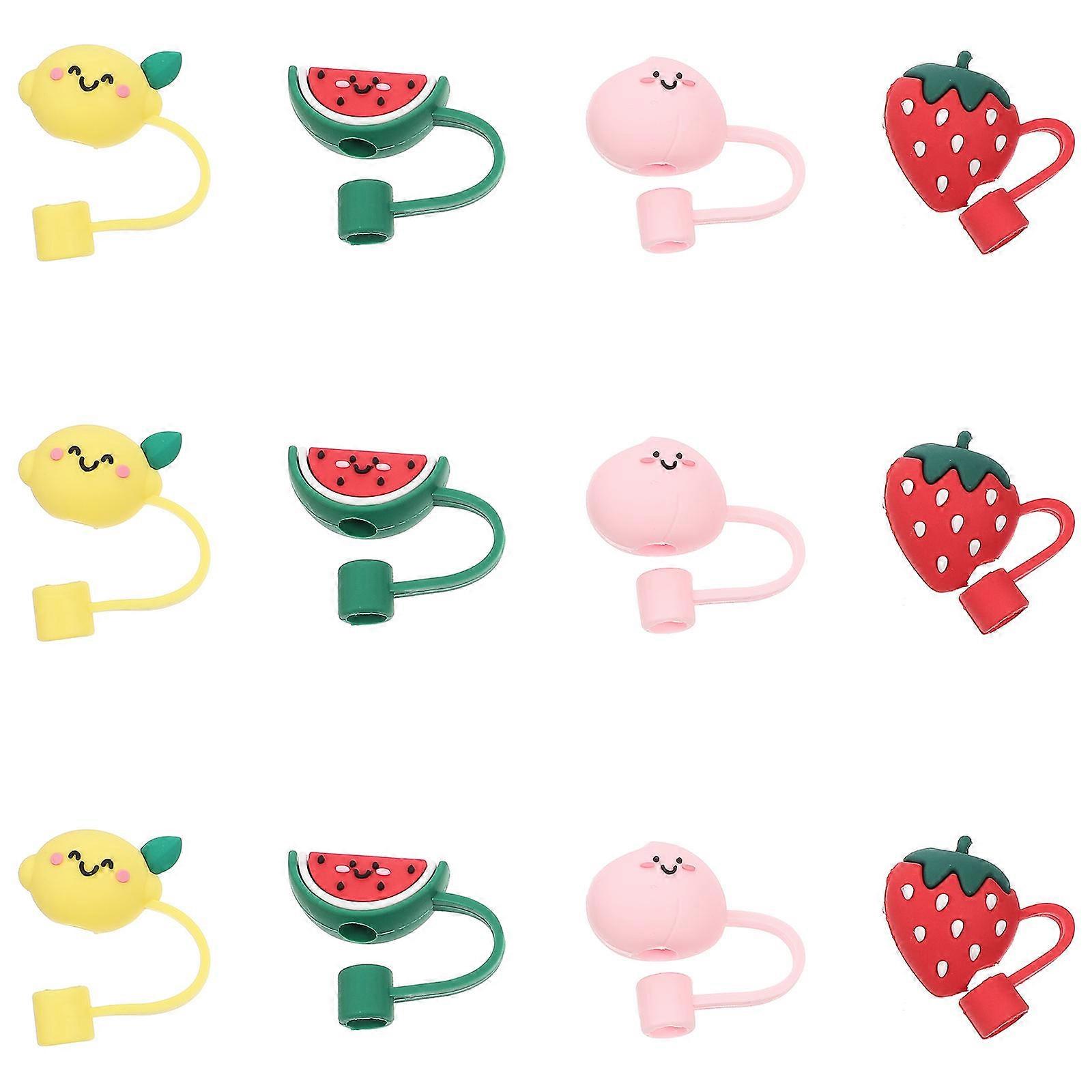 Silicone Straw Caps 12pcs Set with Cute Fruit Designs Reusable Airtight Covers for Straws, Splash & Dust Protection for Outdoor & Home Use