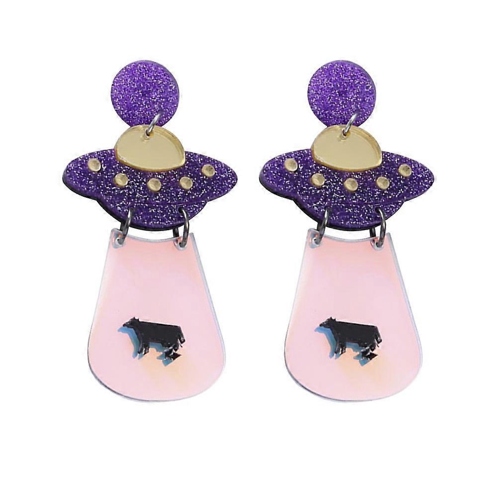 Ufo Shaped Earrings European Style Exaggerated Acrylic Drop Jewelry For Outgoing Prom Beach 1 Pair Purple
