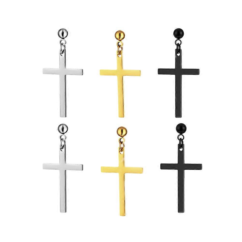 Unisex Cross Dangle Earrings in Assorted Colors Made of Stainless Steel for Any Occasion 3 Pairs