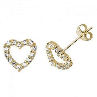 9ct Yellow Gold Zirconia Heart Stud Earrings ES512