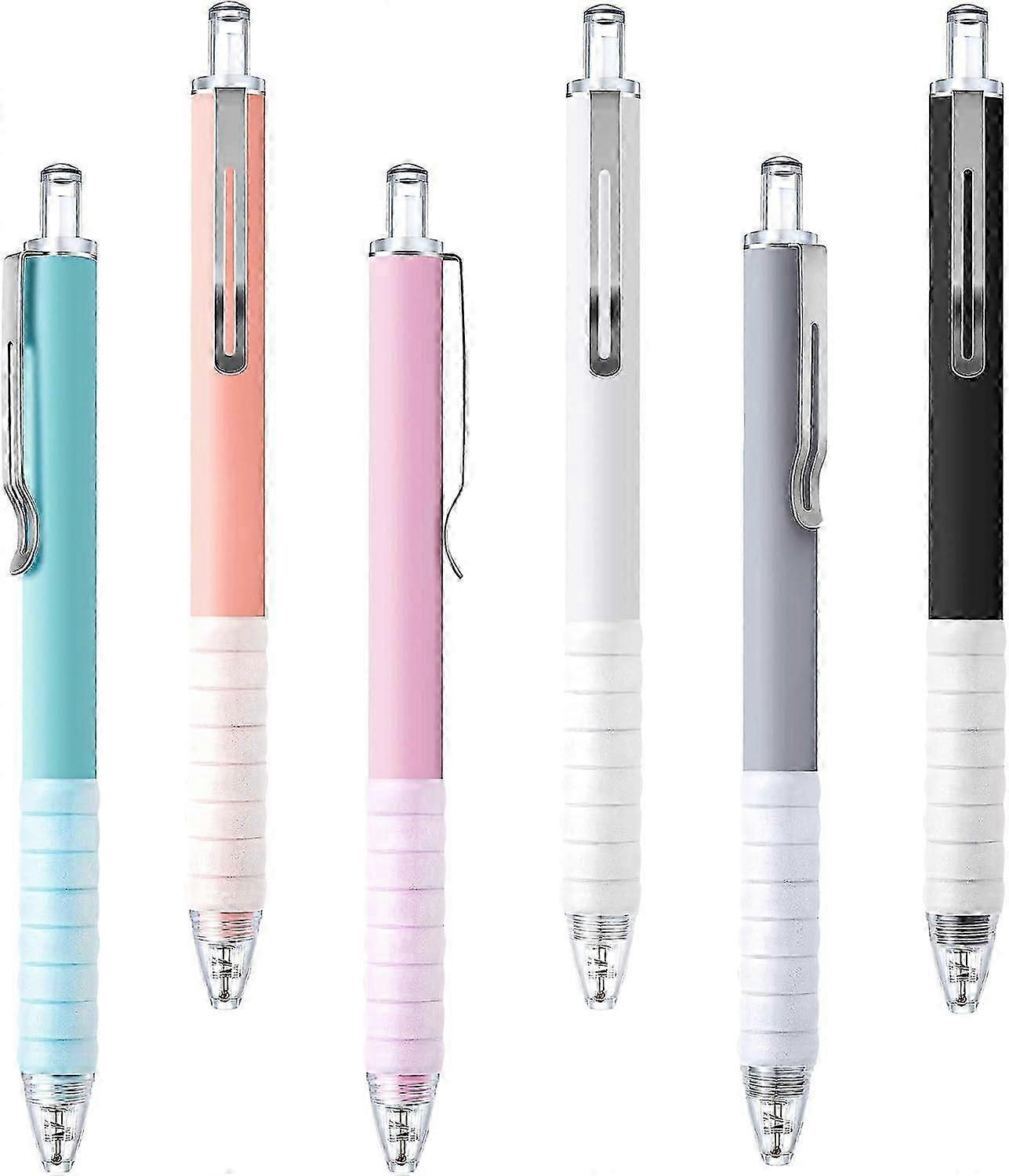 Premium Ballpoint PensThese black ballpoint pens are easy to hold and write smoothly. The writing pen feels smooth and bouncy. With the super soft and comfortable grip, you can easily write for a long time. Retractable DesignOur ballpoint pen is easy to use; just click to open/close. The Black Fountain Pen is an excellent writing instrument that inspires creativity and ensures practicality with its retractable feature. Medium 1.0mm NibThese classic medium ballpoint pens are lifelike, with black ink, they are great tools for everyday writing. This office pen set is durable, refillable, and reliable, while the ball tip is smooth enough to glide across paper. Durable Metal Gold ClipEach black pen ballpoint pen has a durable metal gold clip that allows you to attach the retractable pen to your notebook, binder or pocket for easy access and quick signature work and daily writing tasks. Must-Have Office SuppliesA smooth writing pen is an essential stationery for anyone's office, school, home or workplace. The clip-on pen works as a minimalist decoration or as the perfect office gift for co-workers. Packing list: 6 pens