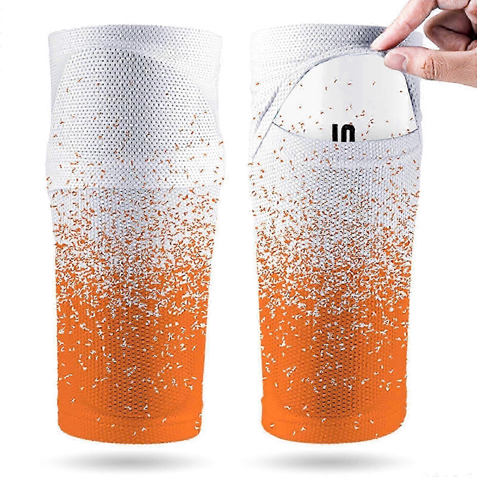 Shin Guard Sleeves for Kid Teen Adult Running Football Games, Shin Guard Protective Sleeves, Breathable Shin Guard Sock orange white M