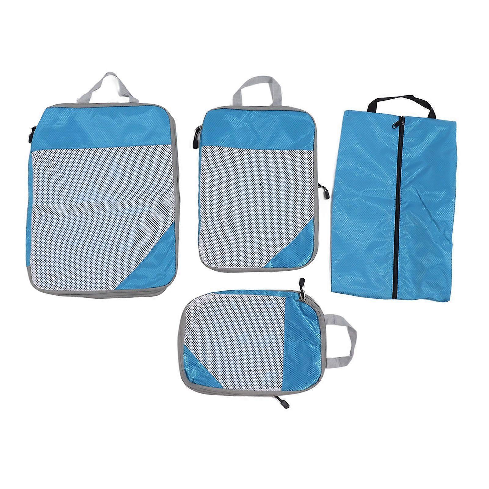 Compression Packing Bags Waterproof Portable Luggage Suitcase Organizer Pouch for Clothing Underwear Shoes 4pcs Blue