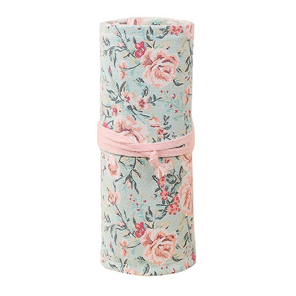 Stationery Bags Canvas Portable Rolling Pencil Roll Wrap Holder Pouch Case Pink Floral Style Storage Organizer With 12-hole