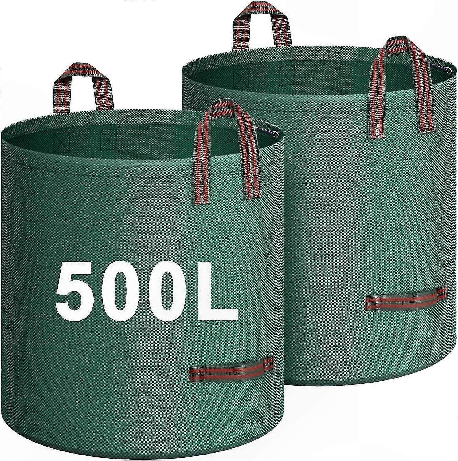 Foldable Green Garden Waste Bags, 2-Pack 500L Capacity, Tear-Resistant with Reinforced Handles, Self-Standing Design for Easy Use