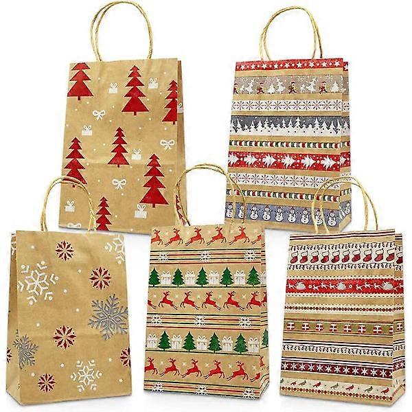 Kraft Christmas paper bags 20 Assorted Styles Christmas paper bags with Handles Christmas paper bags with Christmas print for Gift Wrapping Chris