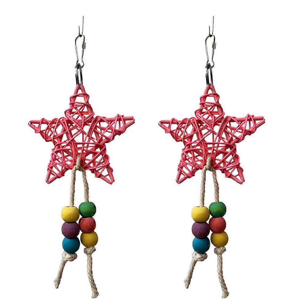 Parakeet Toys Bell Parrot Chewing Toy Solid Wood Star Shape Pet Toy 20X6.5CM 2Pcs
