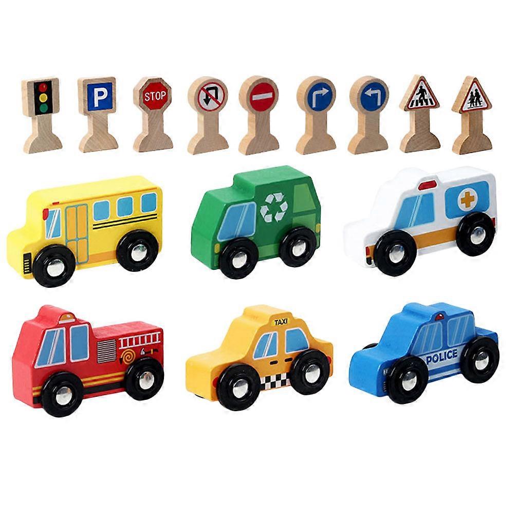 Wood Traffic Signs Toys for Kids Educational Playset Assorted Color Realistic Design for Decoration