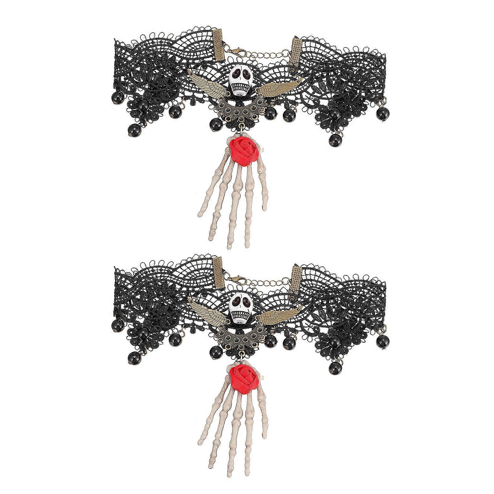 Assorted Color 2Pcs Halloween Lace Choker Necklace Retro Skeleton Claw Pendant For Role-Playing Party