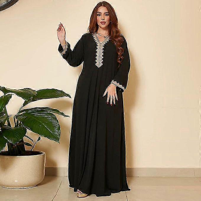 Female Dignified Style V-neck Solid Color Basic Fitness Kaftan