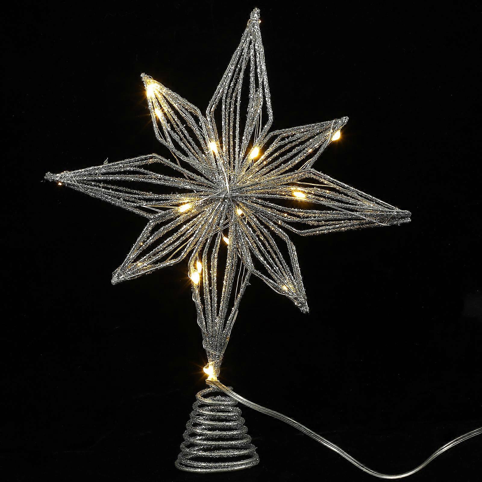Elegant Silver Lighted Star Tree Topper For Home Decor During Christmas Holiday Season 20cm 1Pack