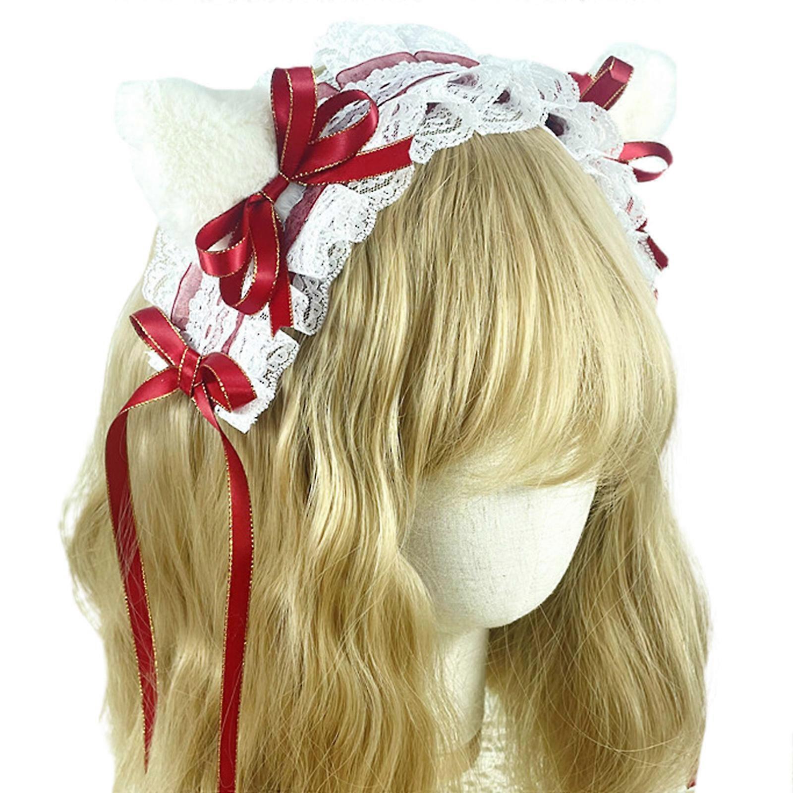 Elegant Pleated Lace for Cat Ear Shaped Hair Hoop Cute Washing Face Hair Holder Halloween Party Costume Headwear for Chi Burgundy