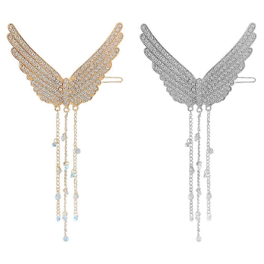 Elegant 2PCS Wings Hairpins with Tassels Stylish Barrette Hair Decor for Various Occasions, Gold & Silver