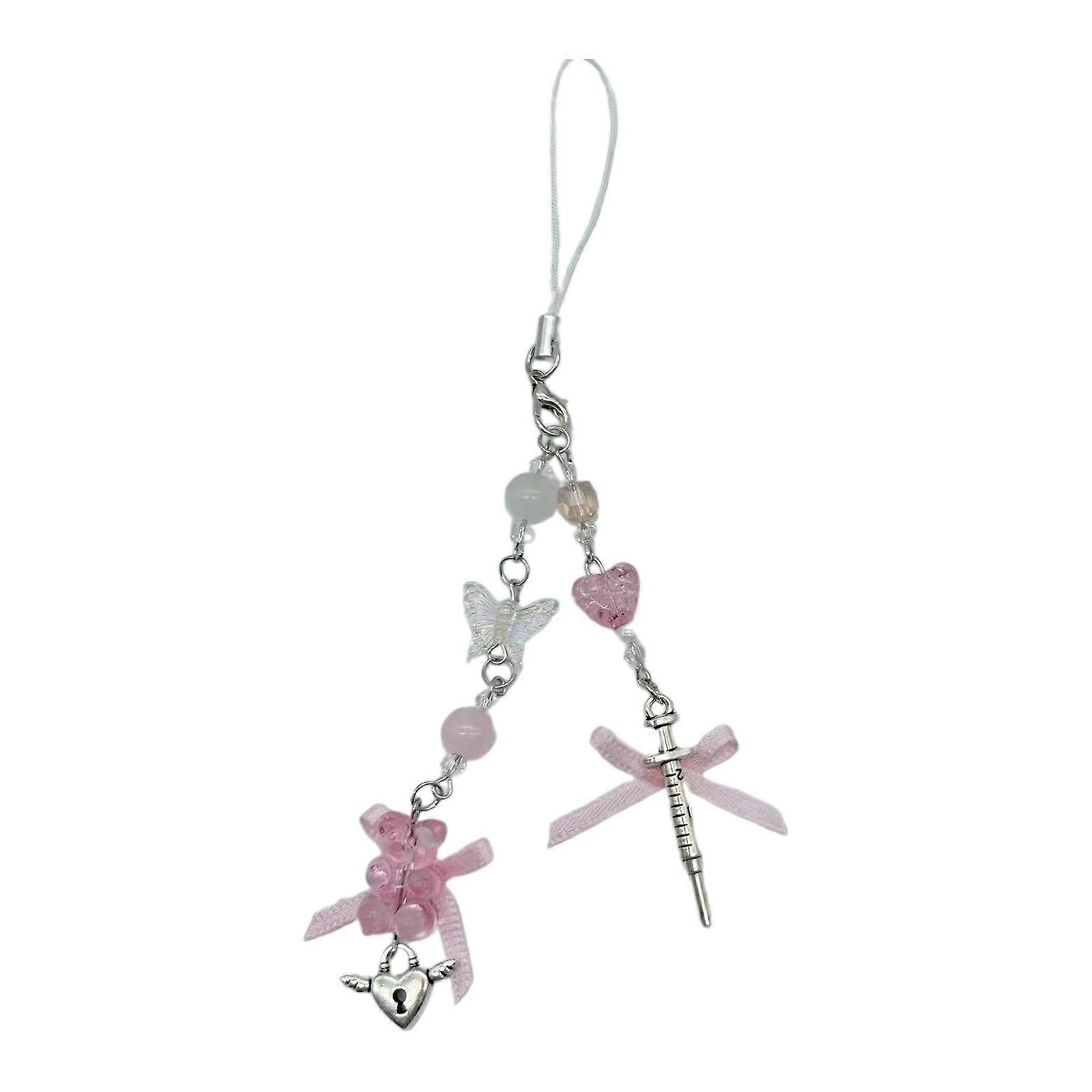 Stylish Bowknot Phone Chain Ornament Heart Beaded Cellphone Pendant Phone Lanyard Bag Charm for Fashionable Individuals
