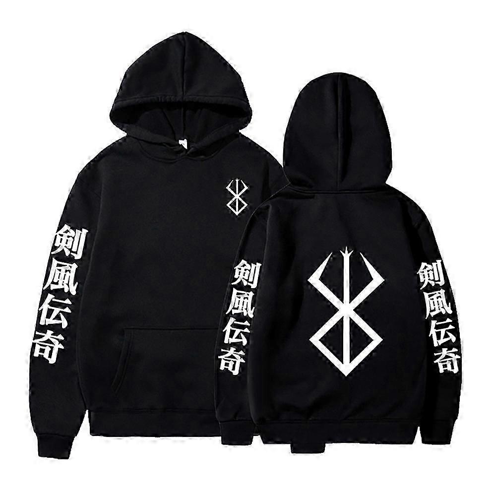 Anime Clothes Berserk Hoodie Graphic Print Pullovers Winter Long Sleeve Hoodies Harajuku Hoody Men Black Oversize Sweatshirt
