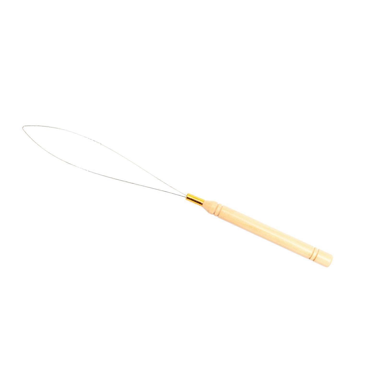 Hair Extension Loop Needle Prevent Slip Wooden Handle Lightweight Loop Threader Pulling Hook Tool for Beads Tubes