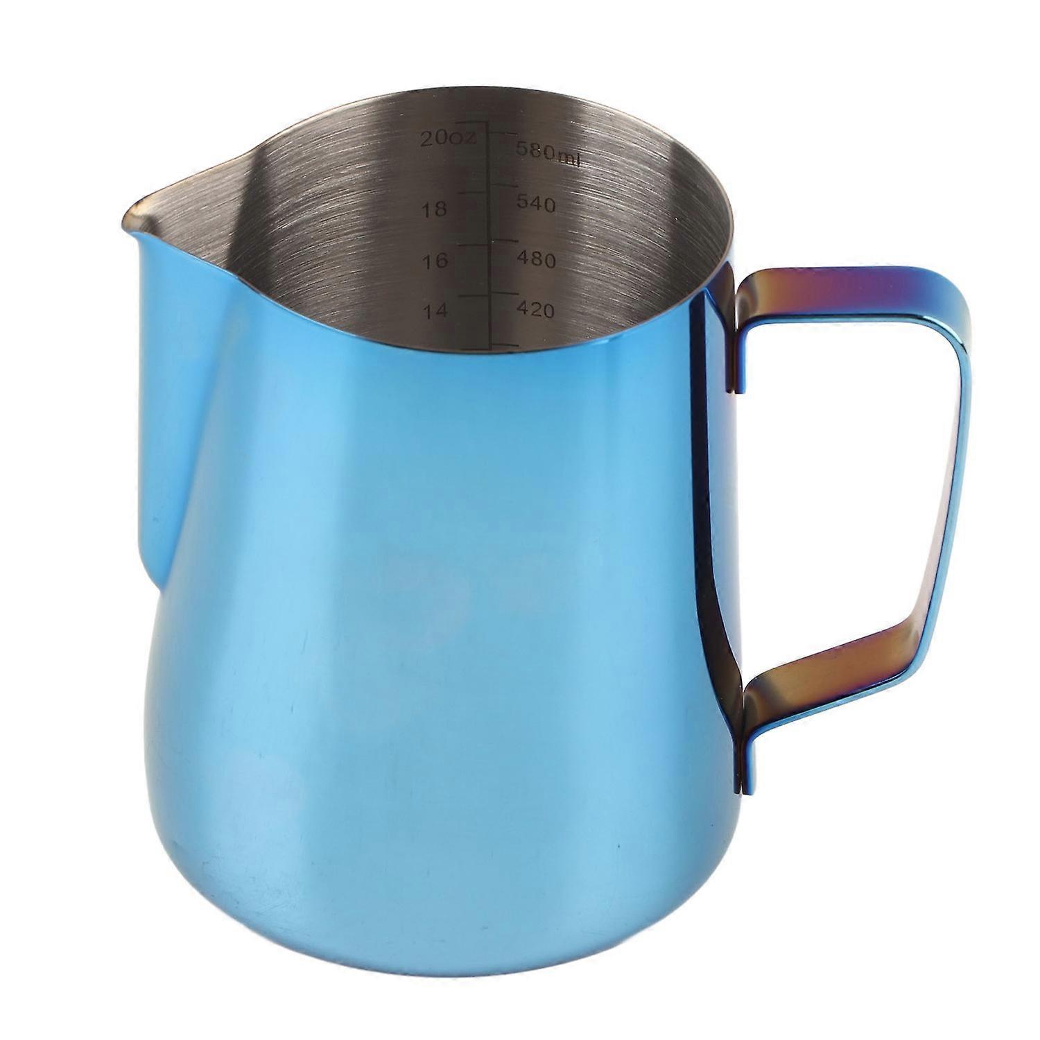 Milk Frothing Pitcher Japanese Style 304 Stainless Steel Coffee Cup Mug for Home Bar(600ML Bleu )