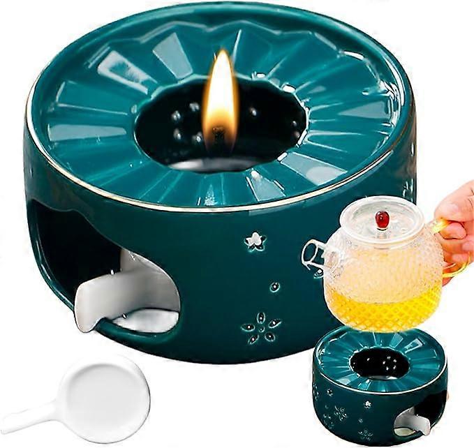 Glass flower teapot, teapot ceramic warmer with hollow carved design and base candle heating, used to heat tea and coffee and maintain temperature