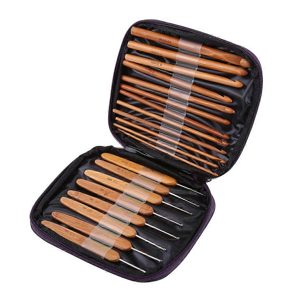 Bamboo Crochet Hooks Needles Knit Weave Craft Yarn Sewing Knitting Tools with Case