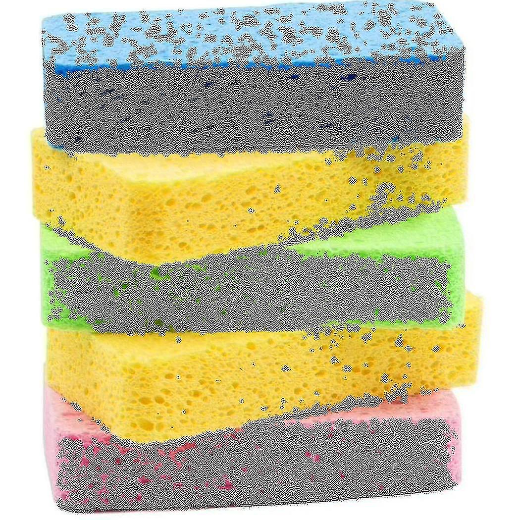 [Larger Size]The scrub sponge measures 11x7x2cm, which has better function, and easy to hold without any inconvenience.[Efficient and Durable]The sponge is made of high-quality Material, soft in texture and dense in strength. This makes them rich in foam and easy to wash kinds of kitchen utensils.[Plant-based]Made of plant materials, fast drying. This dishwashing sponge will not leave food inside, so it will not have the unpleasant smell of other kitchen sponges.[No Scratches] Dish sponge have a soft and unique material, so you can use them without scratching dishes, plates or cups. It can even be used on hard-to-scratch surfaces without leaving any marks such as window, non-stick pans and expensive glassware.[What You Get] 5*color sponges (including 2 yellow, 1 green, 1 pink, 1 blue,)Material:spongecolour:Yellow+blue+green+pinkPackage Contents:5 * Dish SpongeOnly the above package content, other products are not included.Note: Light reflection and different displays may cause the color of the item in the picture a little different from the real thing. The measurement allowed error is +/- 1-3cm.
