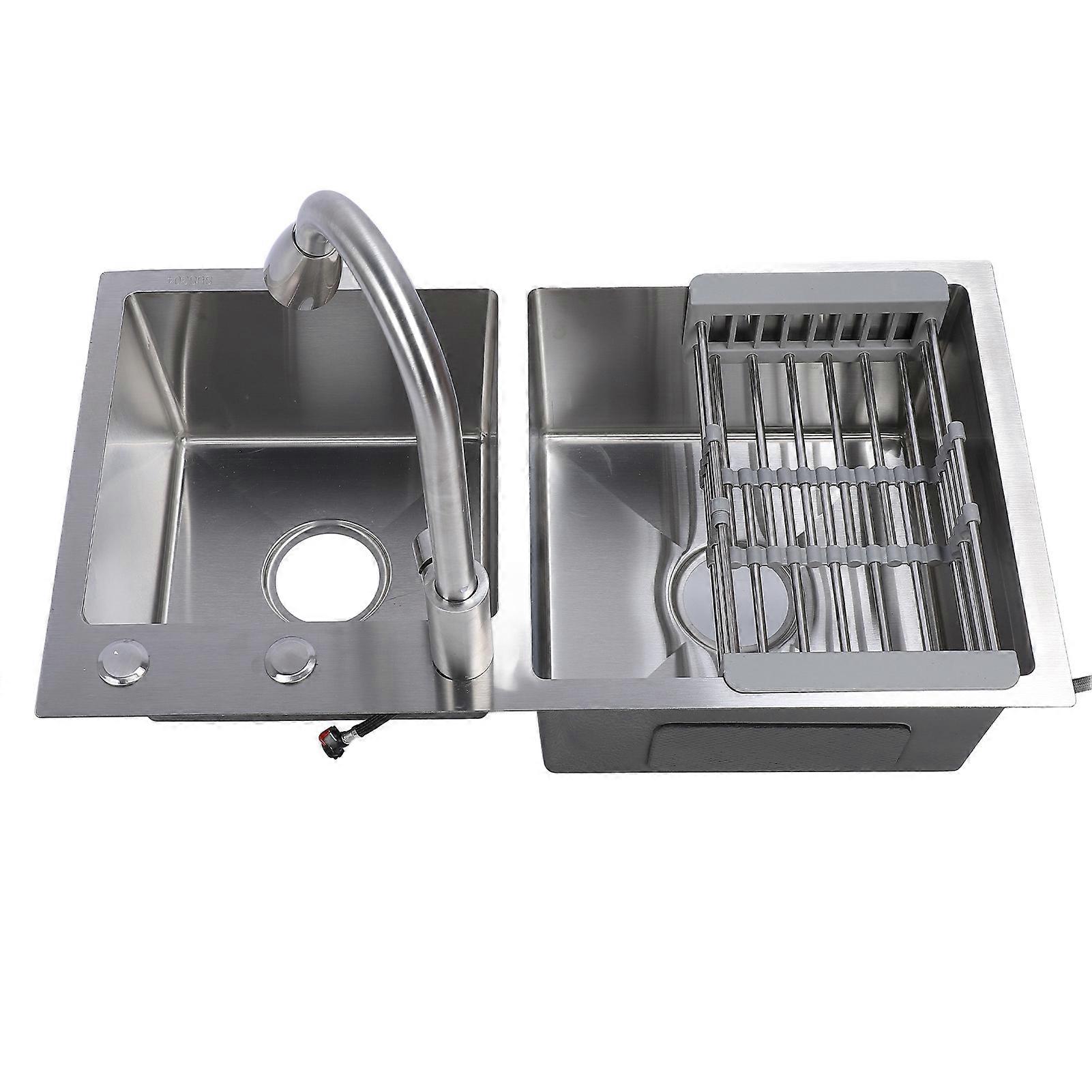 Drop in Kitchen Sink Kit 304 Stainless Steel Pull Out Faucet 3 Hole Double Bowl Sink with Drain Basket Soap Dispenser