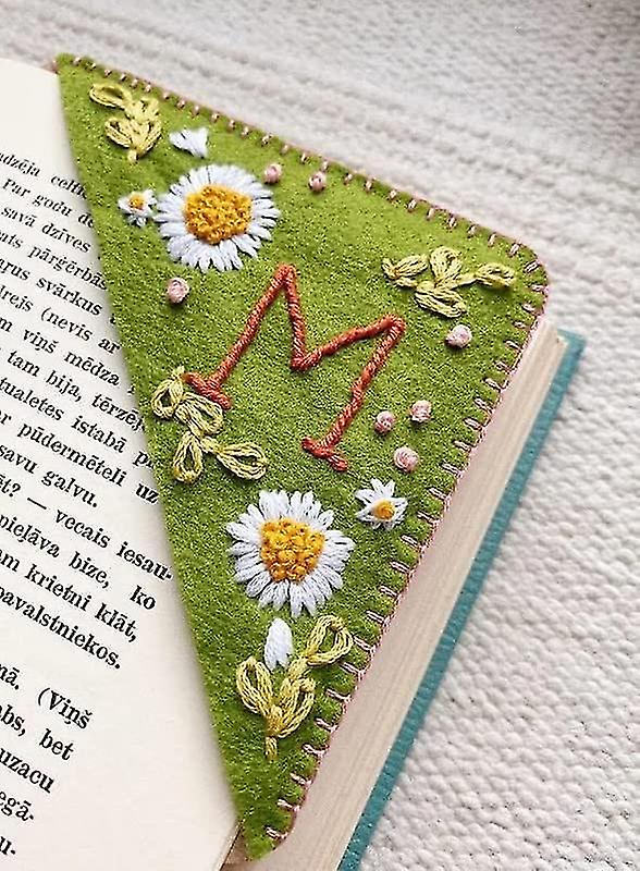 Hand Embroidered Corner Bookmark, Hand Stitched Felt Corner Letter Bookmark, Felt Triangle Bookmark, Cute Flower Letter Embroidery Bookma