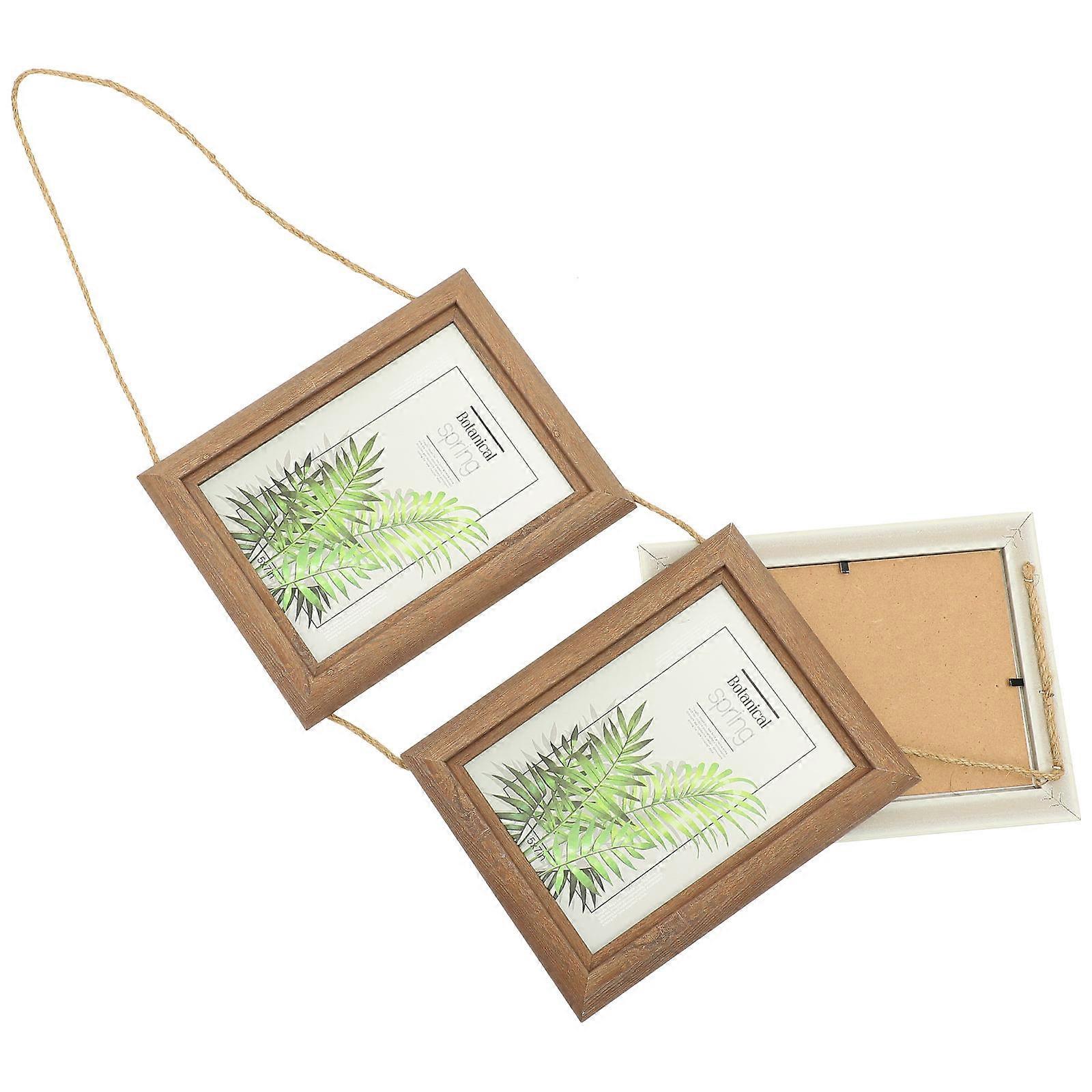 Wood Picture Frame Plaque Wall Mounted Photo Frame Home Decoration Indoor Use Rectangle Shape Simple Style 1Set