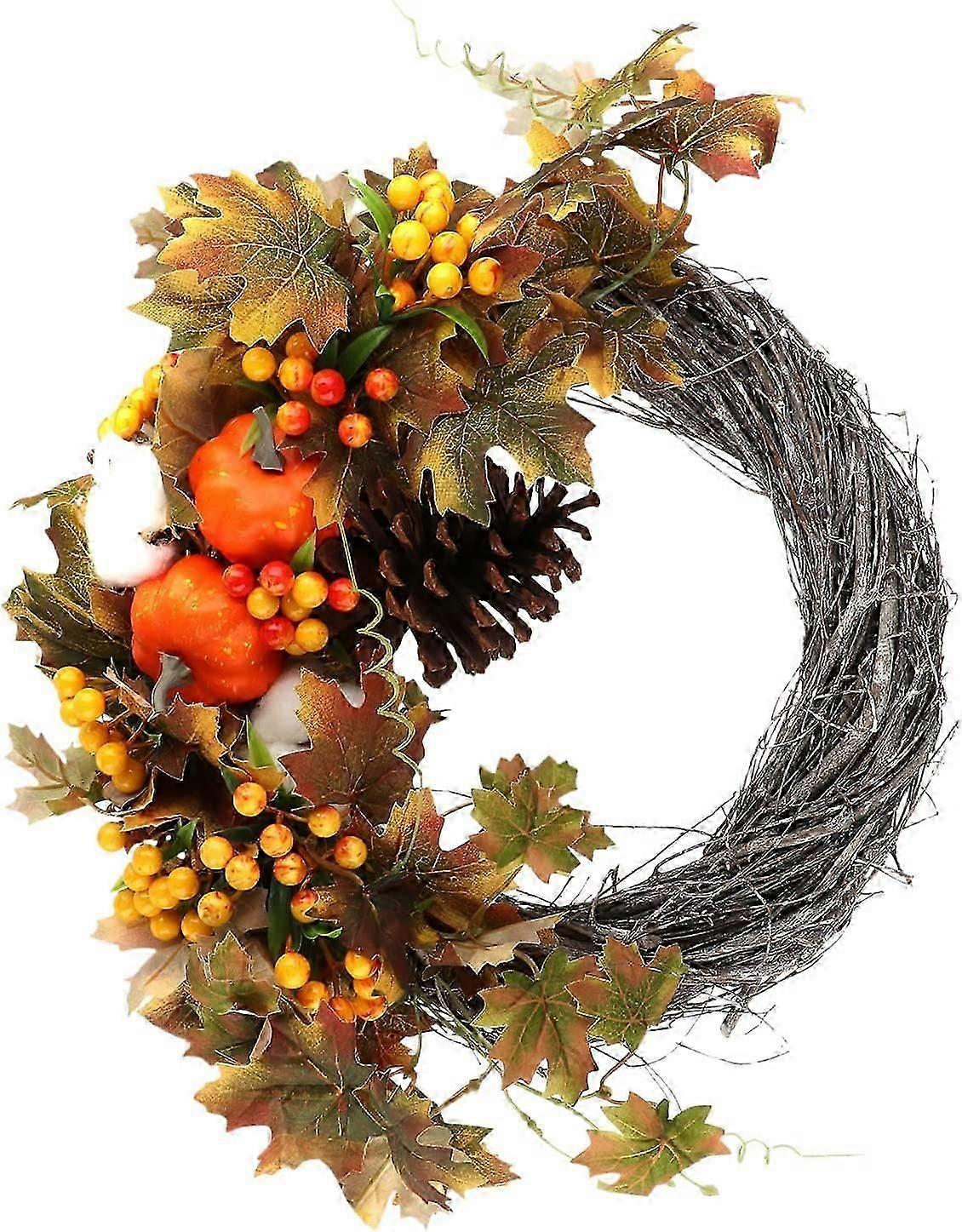 38cm Artificial Maple Leaves Wreath, Autumn Wreath with Pumpkins and Berries Cotton Front