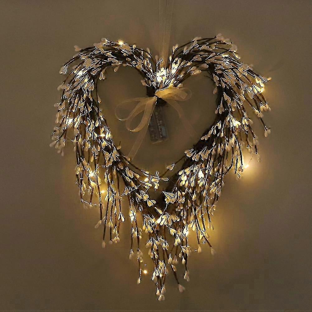 Valentine's Day Heart Wreath with Twigs and Light - Living Room Wall Staircase Door Decoration