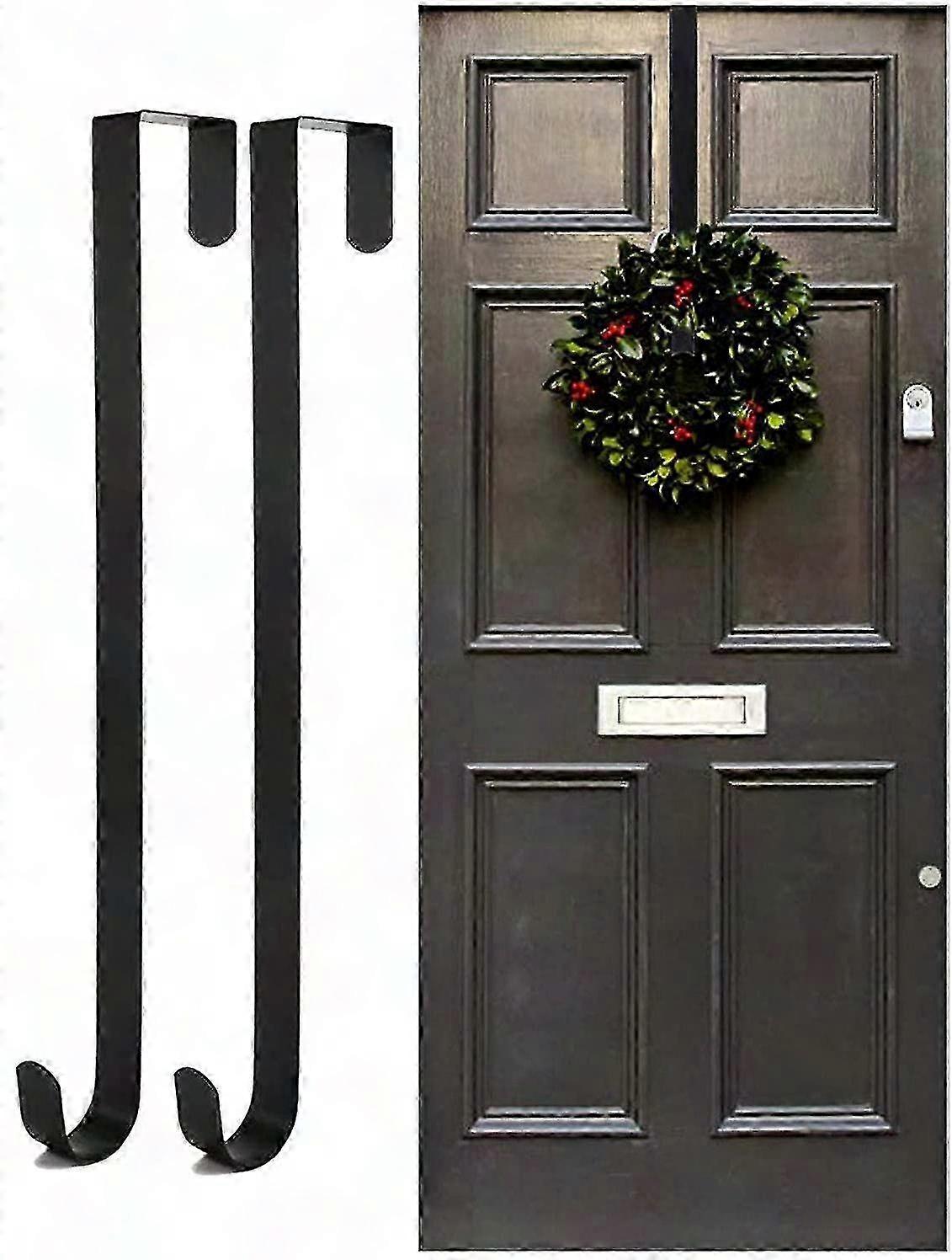 Metal Wreath Hanger Door Hook for Christmas, 2-Pack Wreath Holder for Front Door, Above Door Wreath Hook Holder, Metal Christmas Decor
