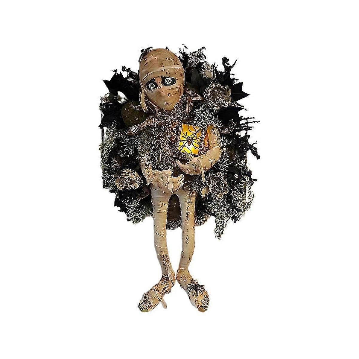 [Exceptional Gift Choice]: Looking for a unique Halloween gift? Look no further! Our Mummy Wreath makes an exceptional gift for family, friends, or neighbors who love embracing the spooky spirit of Halloween. Surprise them with this eye-catching and unforgettable decoration that will make their Halloween celebrations even more memorable. [Spooky Halloween Decor]: Our Halloween Mummy Wreath is the perfect addition to your eerie decorations. Its horror-inspired design will send chills down the of your guests, making it an excellent choice for enhancing your Halloween ambiance. Note that the lamp in the mummy's hand is printed style and gray and does not emit light. [Versatile Indoor and Outdoor Use]: Whether you want to hang it on your front door, porch, or even inside your home, this Mummy Wreath is designed for both indoor and outdoor use. Its high-quality materials durability and resistance to weather conditions, making it a long-lasting Halloween decoration. [Eye-Catching Design]: The attention to detail in our Mummy Wreath is truly remarkable. Its meticulously wrapped fabric resembles bandages, giving it an authentic mummy look. With a length of 20 inches, this wreath is suitable for most door sizes, ensuring a for your home. [Suitable for Multiple Occasions]: Not only is our Mummy Wreath perfect for Halloween, but it also adds of character to your Thanksgiving and fall decor. Its neutral colors and versatile design a wonderful additionto your seasonal decorations. Whether you hang it during Halloween or keep it up throughout season, this wreath will bring charm and of horror to your home. Power supply : 3 x button batteries (not included) Color: As Shown Material: plastic Package Contents: 1 x Decorations Only the above package content, other products are not included. Note: Light reflection and different displays may cause the color of the item in the picture a little different from the real thing. The measurement allowed error is +/- 1-3cm.