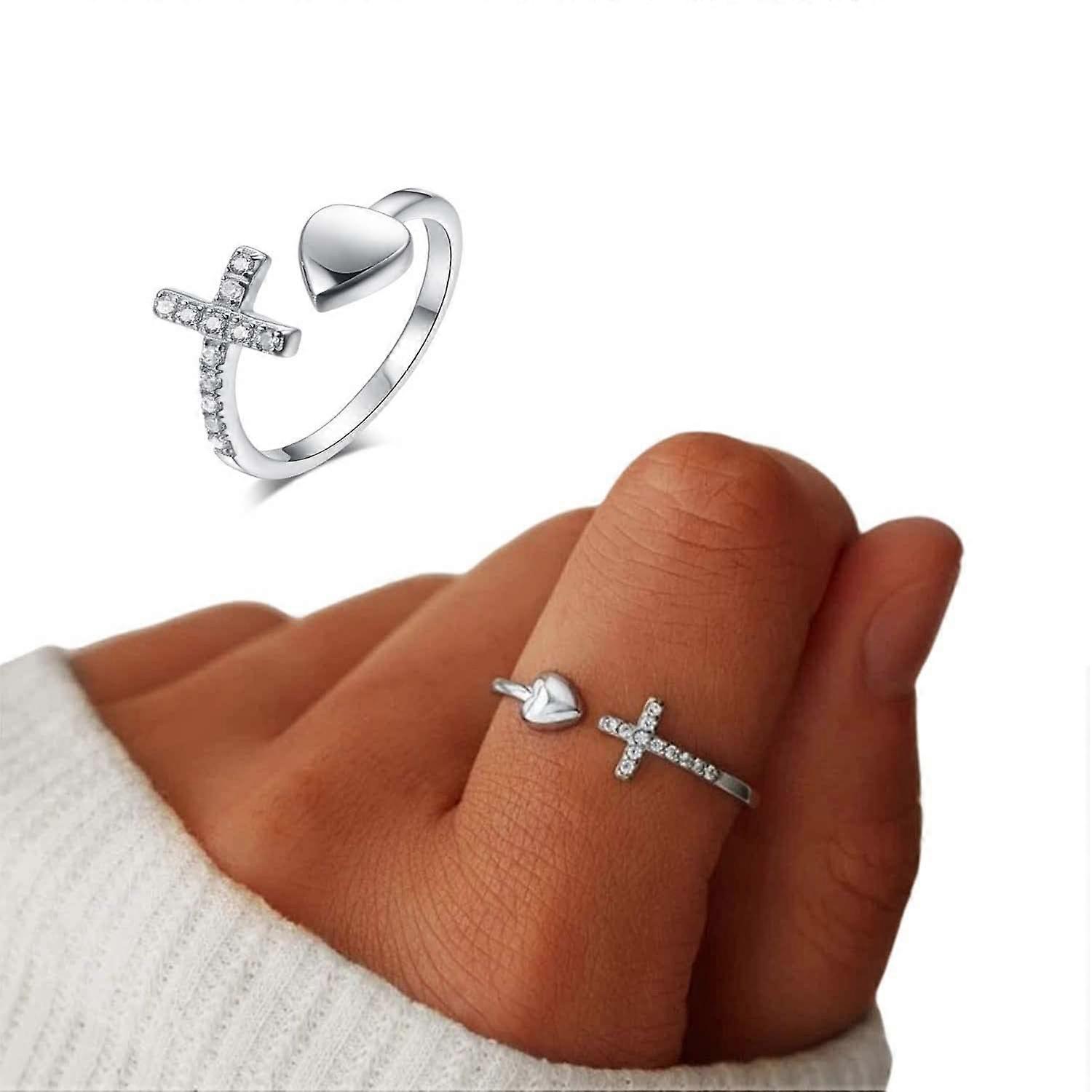 To My Daughter Pray Through It Cross & Heart Ring - Sterling Silver 925 Adjustable Open Cross Love Rings, Never Give Up