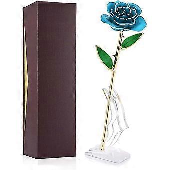 Forever Rose, 24k Gold Foil Eternal Rose With Display Stand In Box Silver Artificial Rose Flowers For Mom, Lover, Women Thanksgiving Day, Christmas, B