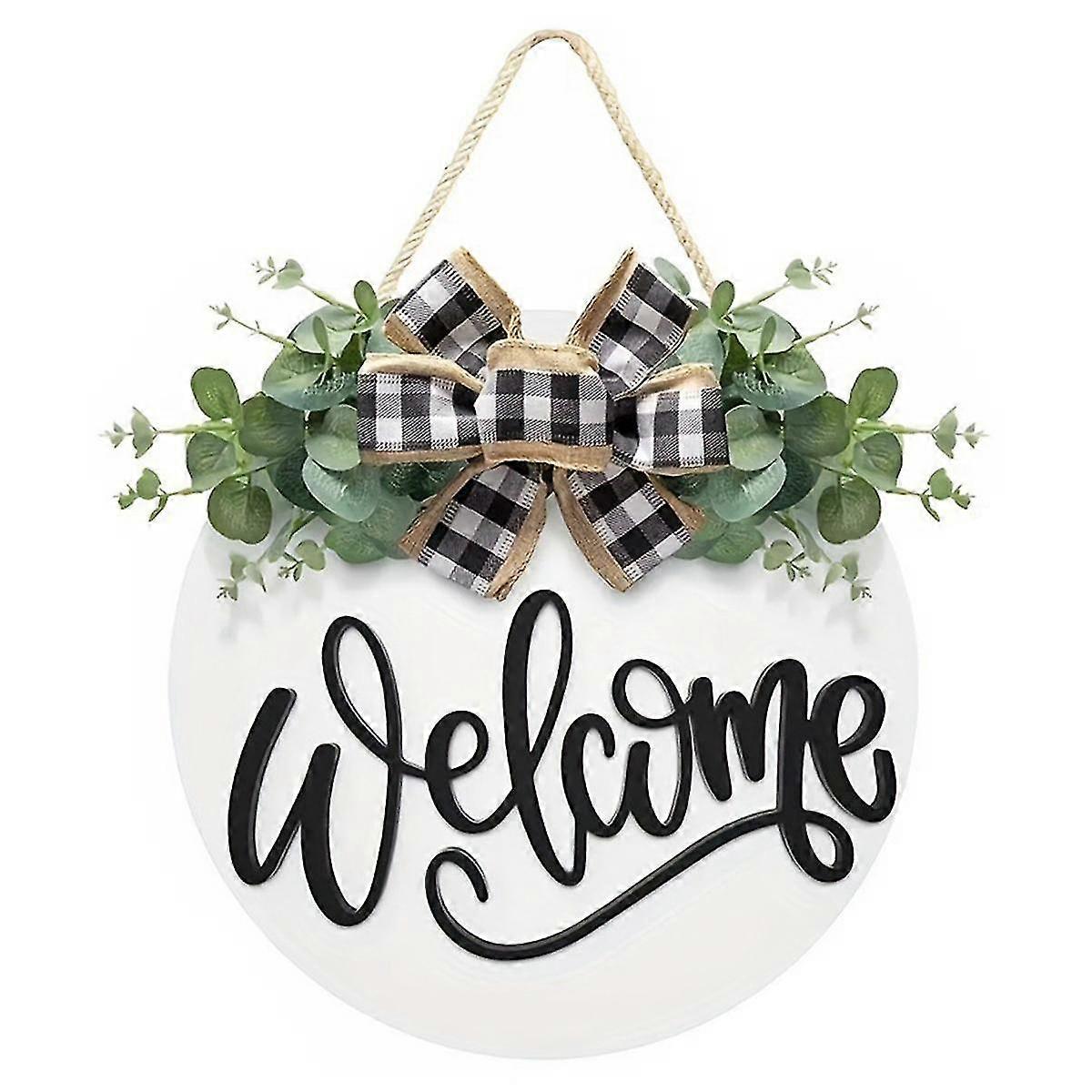 Door Welcome Sign Farmhouse Door Front Door Decoration Rural Green Plants Round Wooden Hanging Sign