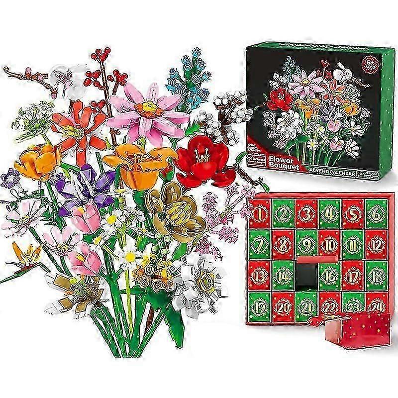 Flower Bouquet Blocks Christmas Advent Calendar, Xmas 24 Days Sunflower Bouquet Blind Box