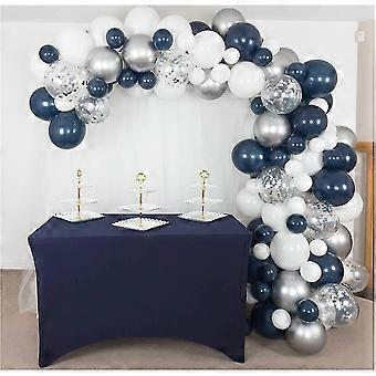 Premium Navy Silver Balloons - Navy Blue Balloons Arch Kit, Metallic Silver & White Balloons Blue And Silver Balloons For Gender Reveal, Baby Shower,