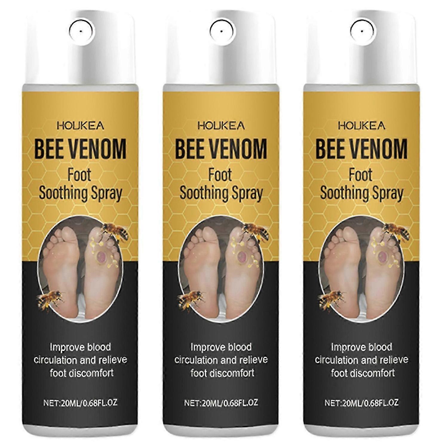Features:<br> Foot Soothing Spray: Our Bee-Venom Foot Soothing Spray, deeply nourishes an repairs damage skin tissues, ensuring your feet stay health and revitalized<br> Natural Ingredients: Formulated with safe and effective natural ingredients, this foot sanitizer is health and worry-free for all skin types<br> Lasting Effect: Enjoy continuous protection from odors with our long-lasting formulas that keeps your feet-fresh and clean throughout the day<br> Compact and Portable: With a 20ml size, this Foot Sanitizer Spray is easy to carry, perfect for on-the-go use<br> Easy to Use: The user-friendly spray design allows for quick operation and immediate results, making foot care a breezes<br> Notice:<br> 1.Actual color may be slightly different from the image due to different light effect<br> 2.Please allow 1-3cm deviation due to manual measurement<br> Net content: 20ml<br> Size: 2.6x2.6x12cm<br> Package List:<br> 1/2/3pcs Bee-Venom Foot Soothing Spray