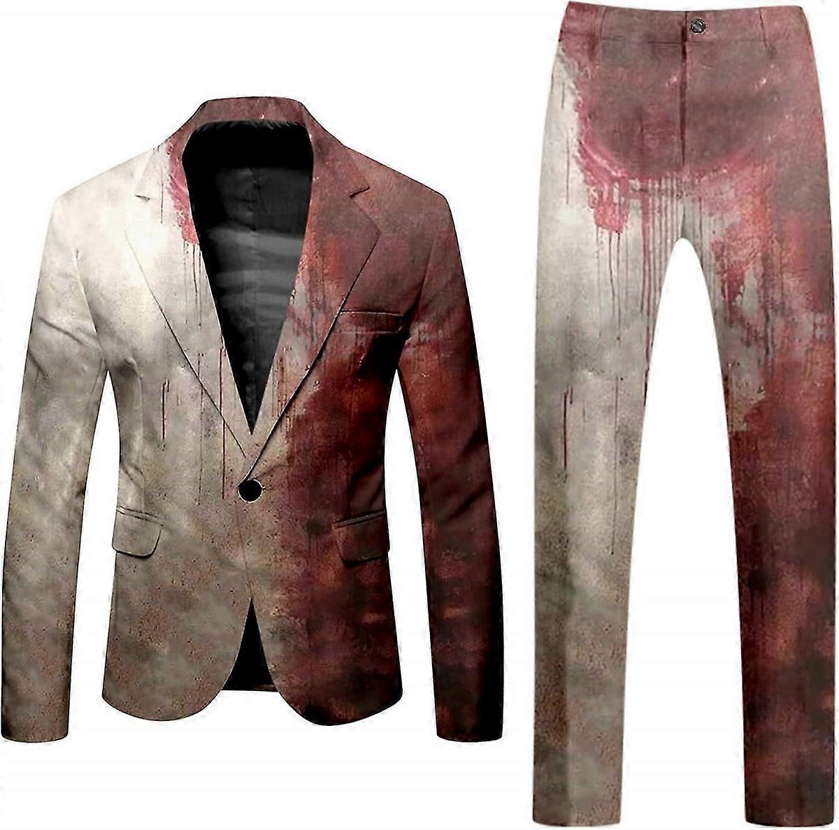 Halloween Suit Men's Blood Splash Horror Outfits Casual Crew Neck Blood Splash Pattern Blazer Trousers Horror Bloody Printed Jacket Suit Trousers Bloo