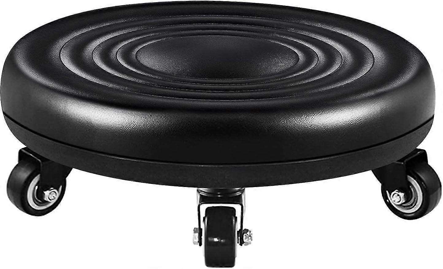 Low Stool With Wheels, Rolling Stool Low Leg, Faux Leather Low Seat Metal Base, Round Leather Bench With 5 Wheels Universal For Home Office Or Fitness