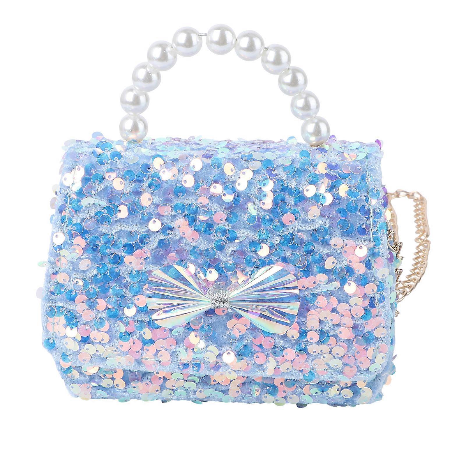 Sparkly Clutch Shining Sequined Lady Crossbody Bowknot Bag Pearl Clutch Bag for Women Ladies Girls Lake Blue Cocktail Parties 1Pack