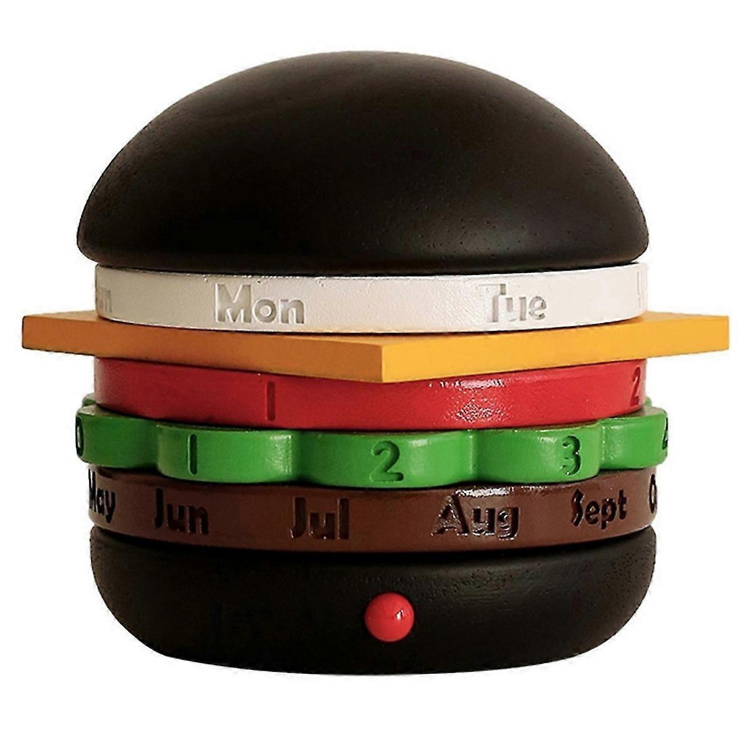 Burger Shape Calendar Solid Wood Home Decor Rotating Calendar Table Decoration Matching Gift Desk Ca