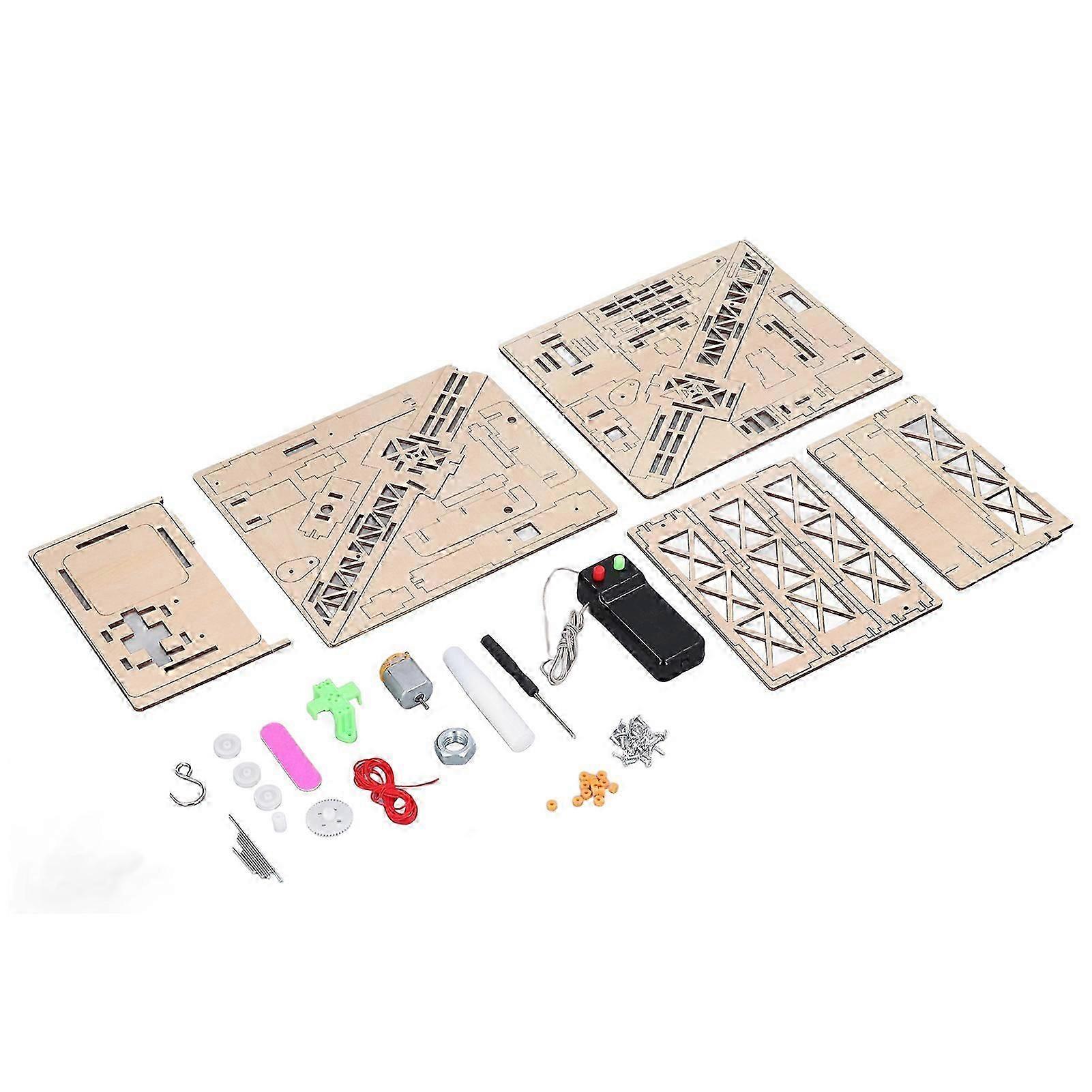 Tower Crane Model Toy Wooden Kids DIY Remote Control Lifting Educational Science Experiment Aid
