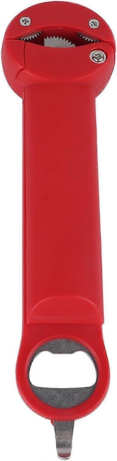 Stainless Steel Adjustable Cap Screwer, 3 in 1 Multifunctional Jar Bottle Opener for Easy Opening, Retractable Tool with Saw Tooth Design (Red)