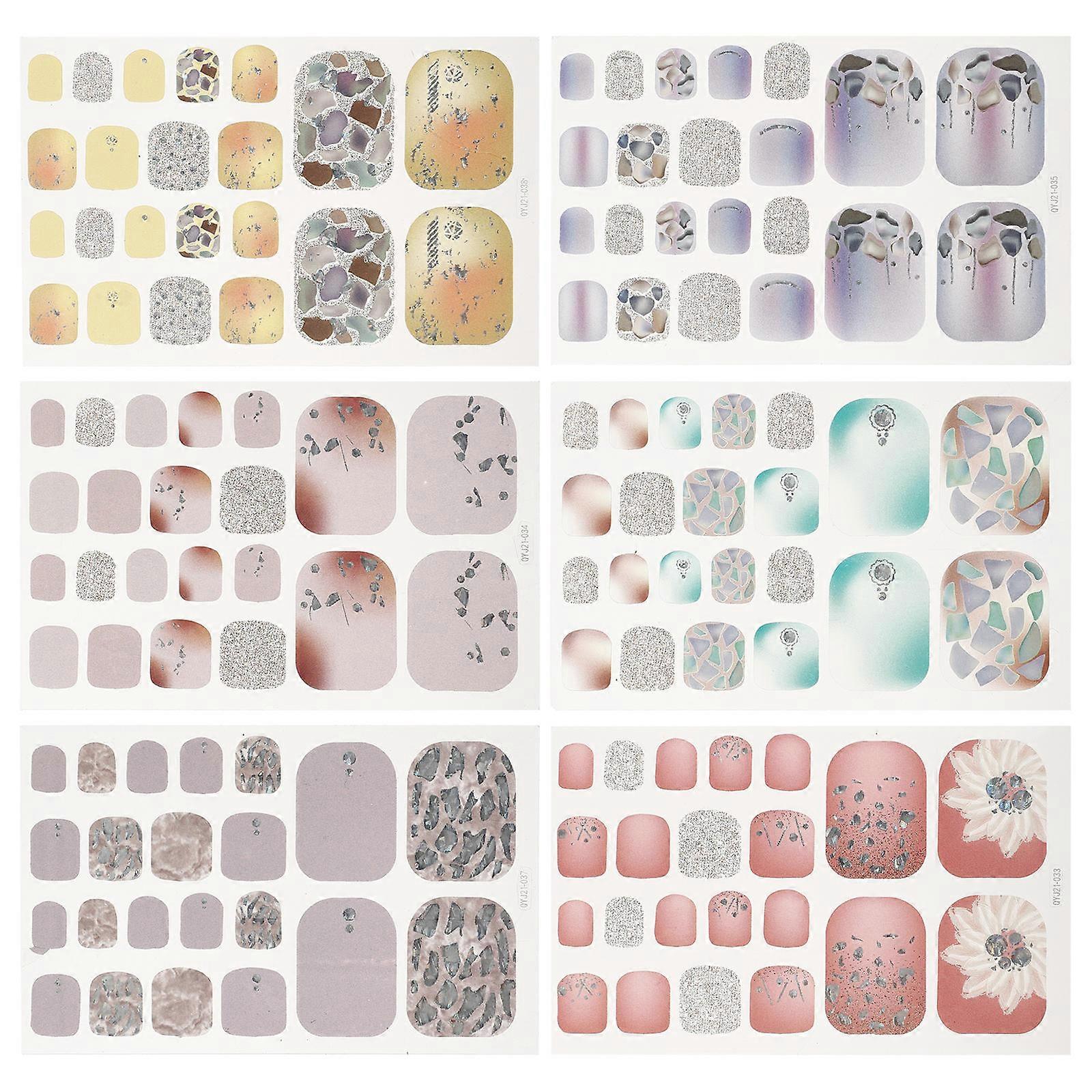 Bronzing Toe Nail Sticker Decoration For Women Square Shape Manicure Assorted Color 6 Sheets