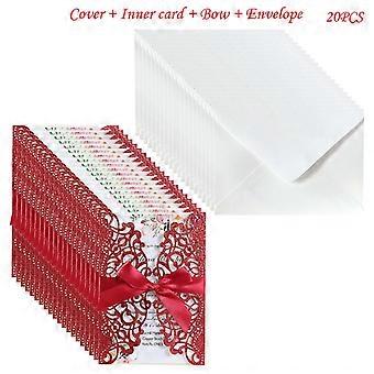 بطاقات دعوات حمراء 20 قطعة بريق جوفاء مع شريط مغلفات لدعوة الزفاف