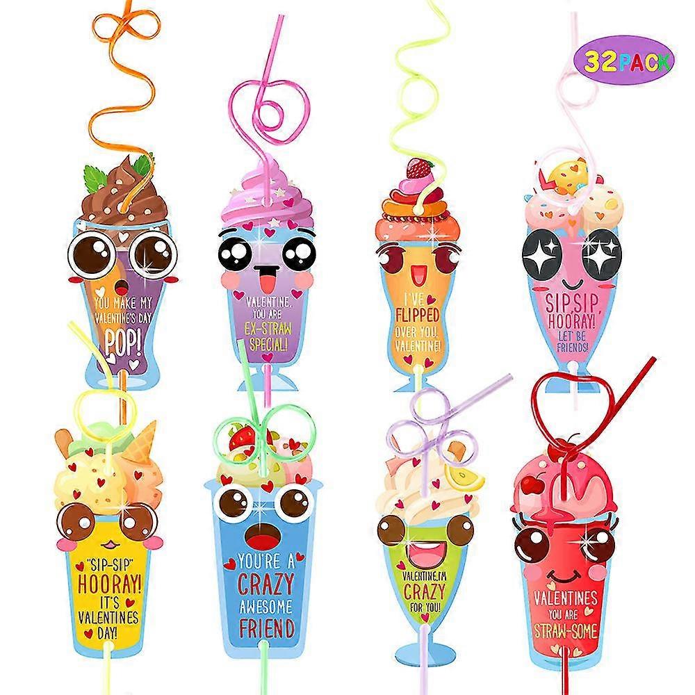 Valentines Day Cards With 32pack Loop Reusable Drinking Straws For Kids School Classroom Valentine Day Exchange Cards