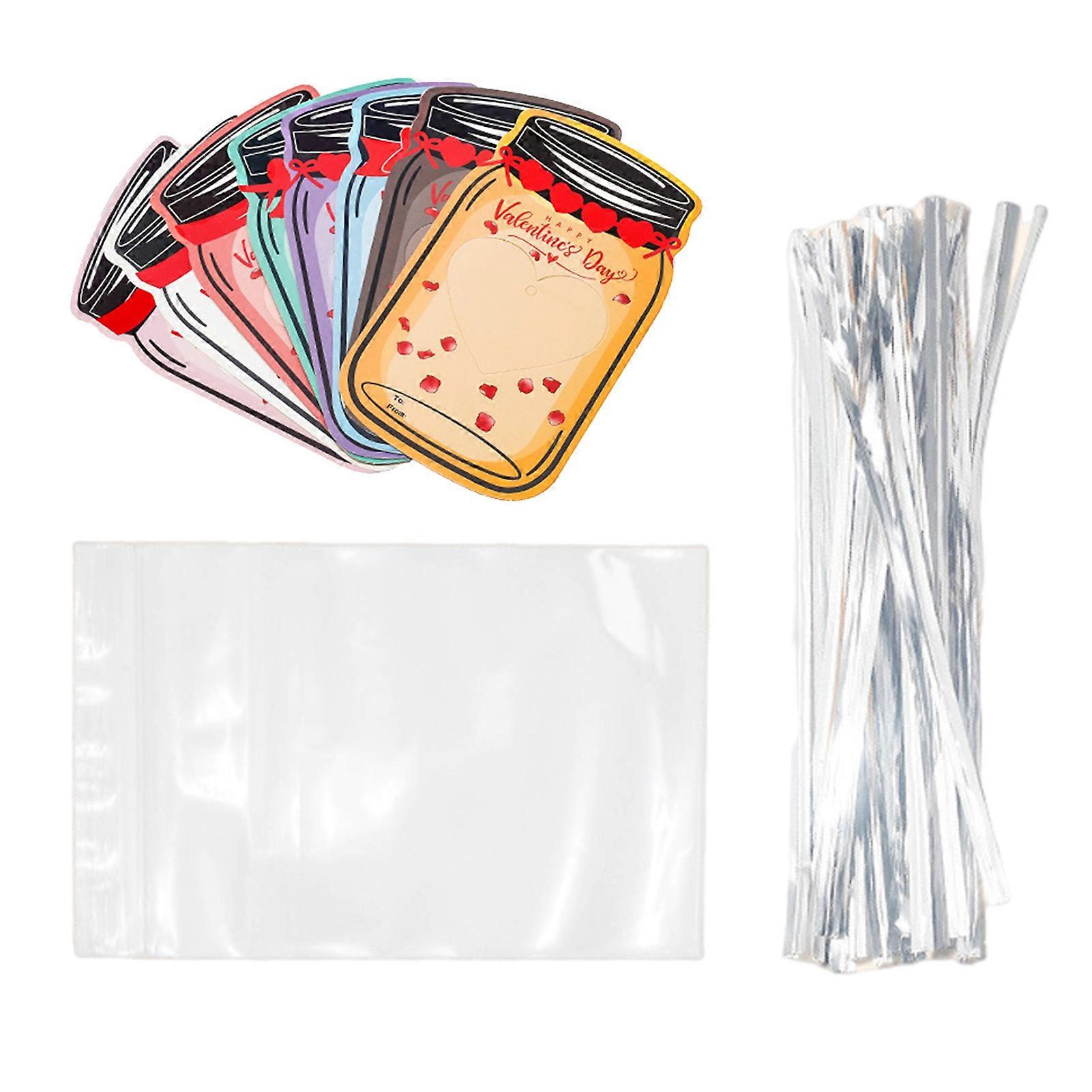 Valentine's Day Greeting Card with Candy Bags DIY Handmade Romantic Love Heart Mason Jar Holiday Party Cards for Kids
