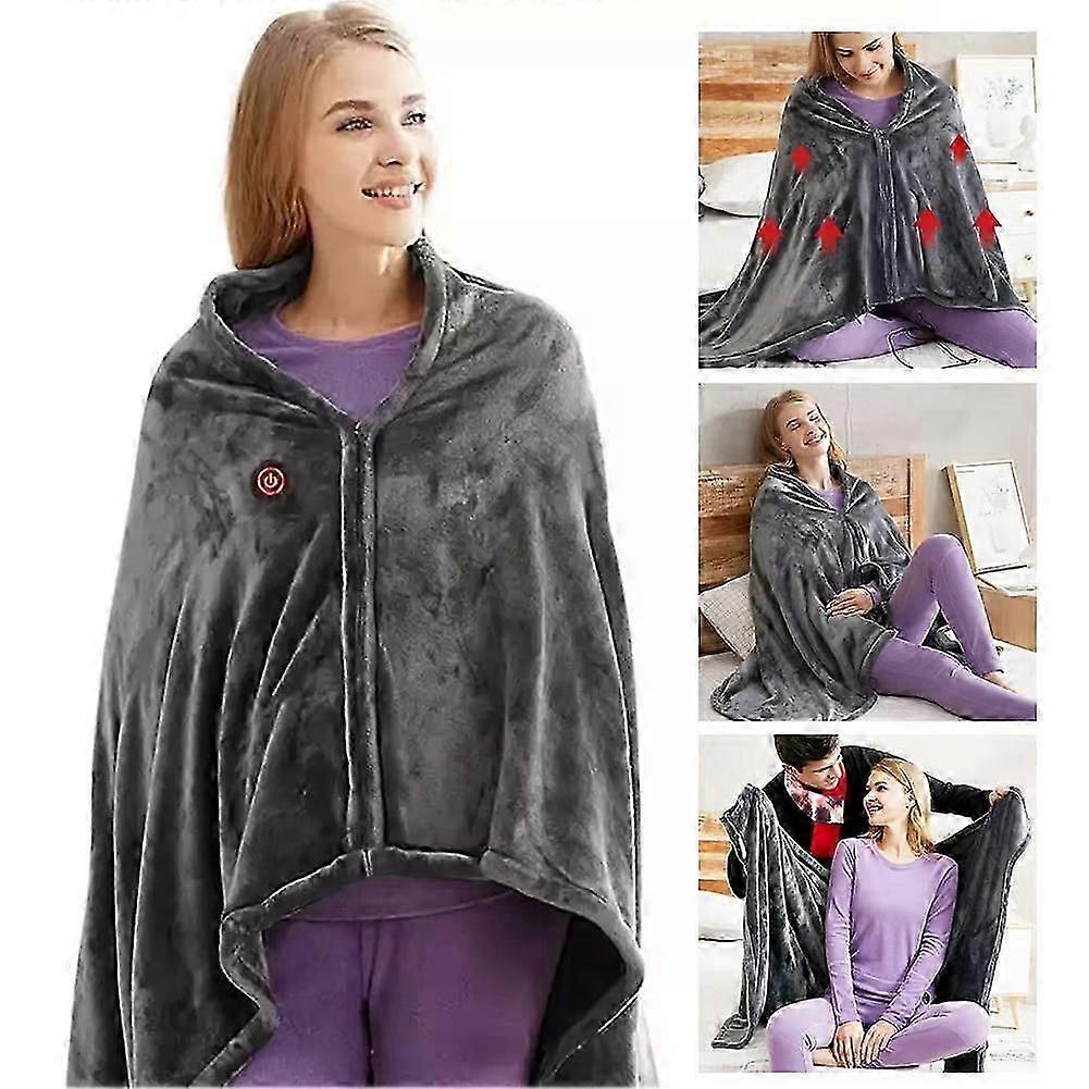 Electric Heating Blanket USB Charging Heated Shawl 3 Heating Level Coral Fleece Plush Winter Warm Shawl for Outdoor Home Office