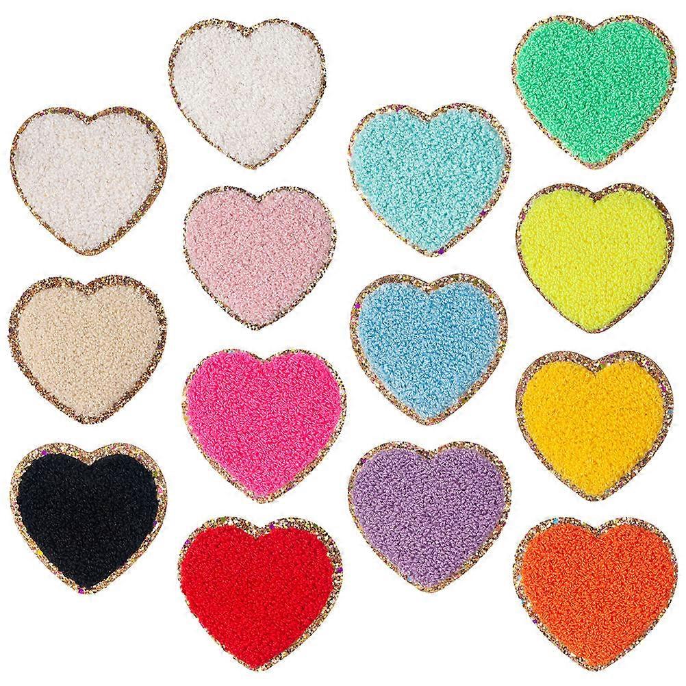 Decorative Heart Shaped Sewn Patches For Sweater Decoration 7.7x7.5cm Colorful 14Pcs